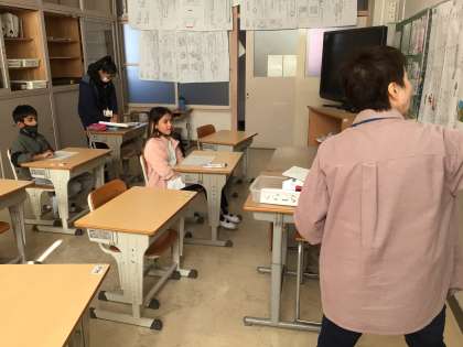 熟語の学習です。「2文字以上の漢字からできている言葉が熟語」をもとに、様々な言葉の中から熟語を見つけました。練習を重ねるごとに、先生が指す言葉を「熟語」「熟語ではない」と答える子どもたちの声に自信が満ちてきました。