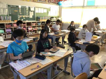 5年生の外国語では、英語で「値段のやり取り」をしました。1,000円以内に買えるデザート、飲み物、食べ物を選んで発表しました。
