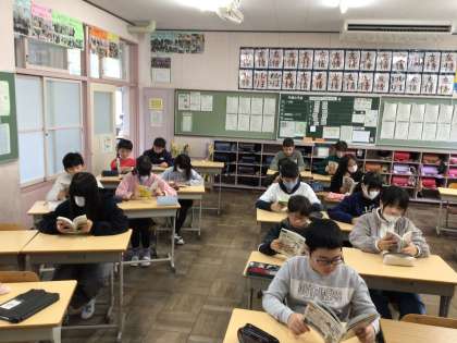 どの学年も静かに読書をしています。本を読む姿勢もいいですね。