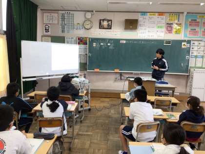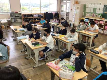 5年社会では、「身の回りにある工業製品について知ろう」というめあてで学習を進めていました。工業ということばについて全体で確認をしていました。黒板の板書をワークシートに写すスピードのはやさはさすが高学年ですね。