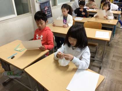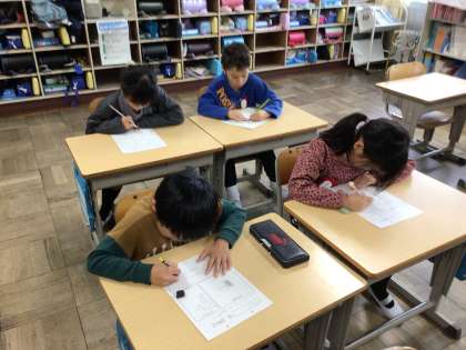 1年生を招待する「おもちゃまつり」の準備を進めています。今日は1年生に説明する練習をしました。説明の文章を読みながら、1年生に分かりやすい言葉に書き直したり、はきはきと話す練習をしたりしました。