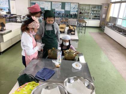 11/26 7、8組 ポップコーン作り 公開日 2024/11/26 更新日 2024/11/26 各学年から 畑で育てたトウモロコシを使ってポップコーンを作りました。焦げないように火を調節したり、トウモロコシを鍋に入れるタイミングを見計らったりしながらおいしそうなポップコーンが出来上がりました。