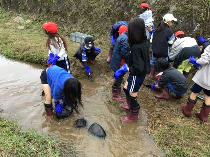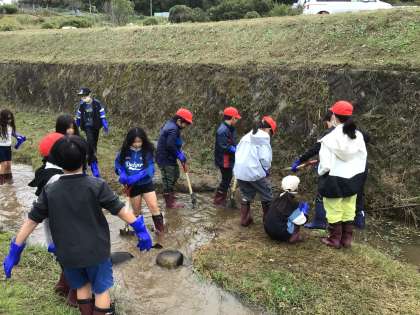 岩本川改修活動の様子です。夢中になって活動しています。