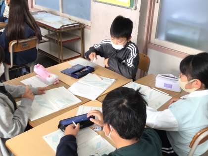 11/27 5年算数2 公開日 2024/11/27 更新日 2024/11/27 各学年から 5年算数では、長方形、正方形、三角形、平行四辺形の面積の求め方を復習した後、ワークシートにある3つの平行四辺形のうちどれが一番大きいのかを考えていました。積極的に意見交流ができていて、図を指差しながら夢中になっていました。