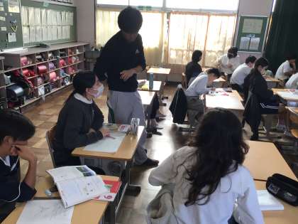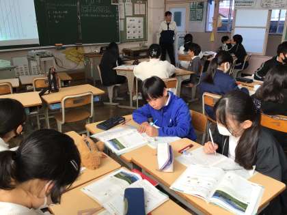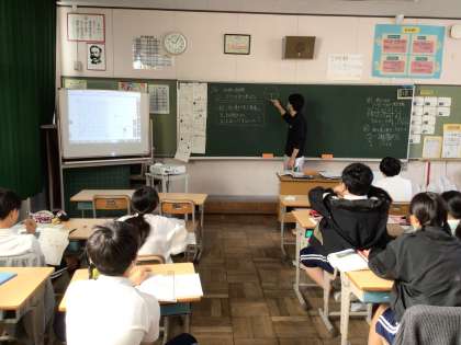 11/27 6年算数1 公開日 2024/11/27 更新日 2024/11/27 各学年から 6年算数では、比例と反比例の単元を学習しています。速さ・時間・距離にかかわる比例のグラフから数量の関係を読み取る内容で子どもたちにとって苦手意識をもつところです。先生の説明や友達と意見交流をしながら学習を進めていました。