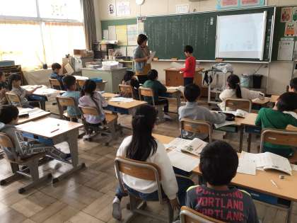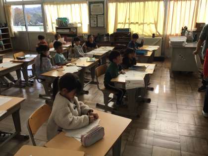 1年生国語では、「すきな教科を選んで話そう」の学習をしています。学習プリントに書き、先生や友だちとすきな教科について話をしました。