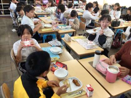 11/27 楽しい給食 公開日 2024/11/27 更新日 2024/11/27 各学年から 今日の献立は子どもたちが大好きな鳥の唐揚げです。じゃんけんに勝った〜と喜びの声も聞こえました。どの学級も楽しく会食していました。