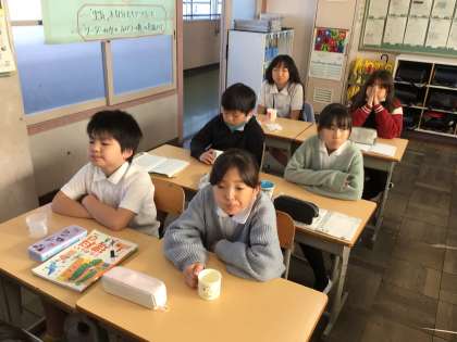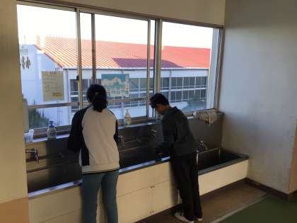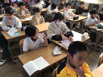 毎週木曜日はフッ化物洗口の日です。今日もリズミカルな曲に合わせてブクブク口内洗浄しました。