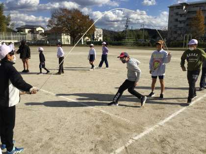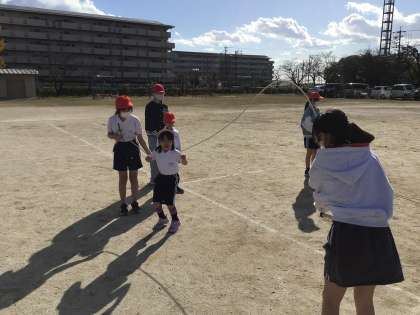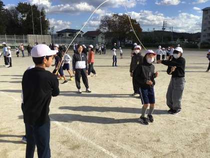大縄練習の様子です。上級生の縄の回し方もうまくなってきましたね。