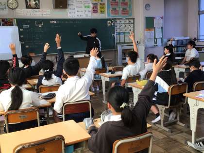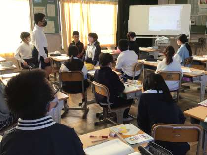 5年生算数では、分数の学習をしています。今日は、分数で分母が違う分数の計算について考え、計算練習をしました。友だちの意見を聞くときには、身体を意見を発表する子の方に向けてしっかり聞いています。