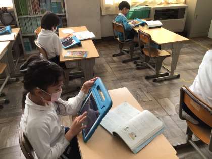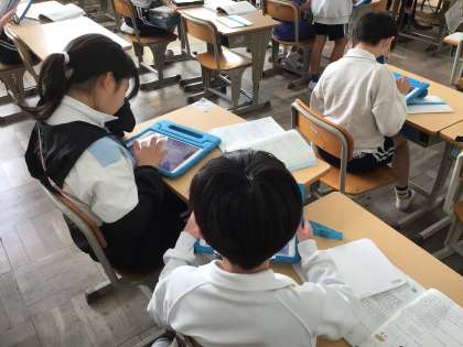 3年生の国語で、ローマ字の学習をしています。今日は、「ローマ字入力」を、学習用タブレットを使って行いました。