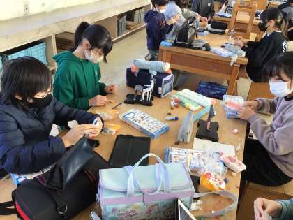 6年図工では、未来のわたしの作品づくり最終日だそうです。骨組みに粘土をつけて形作ったところに着色をして仕上げをしていました。イメージ通りの作品になりましたか?