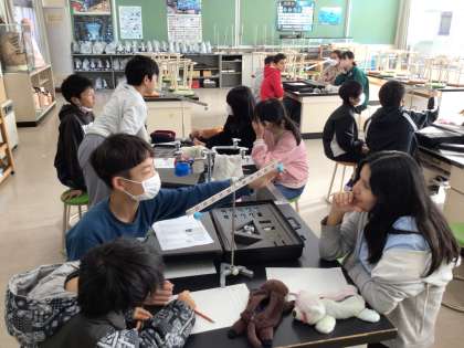 12/4 6年理科 公開日 2024/12/04 更新日 2024/12/04 各学年から 6年理科は、理科室で実験を行っていました。「てこが水平になるのはどんなときだろうか」というめあてで学習を進めていました。力点、支点、作用点を学習して実際にてこに重りをぶら下げてどうなっているか考えました。