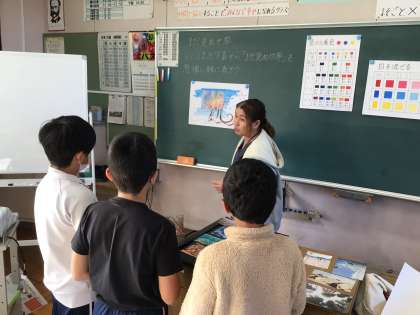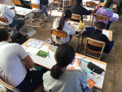 5年図工では、まだ見ぬ世界の作品作りに入っています。思うような色が作れなかったり、構成に悩んだりしている様子でした。