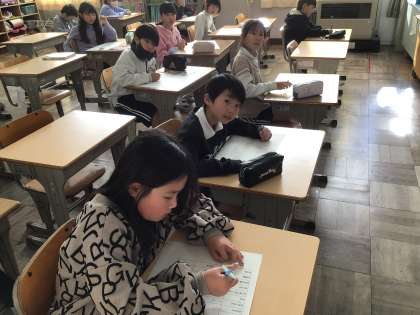 12/9 3年生国語2 公開日 2024/12/09 更新日 2024/12/09 各学年から 3年生国語で、月例テストに向けてプリントで学習しました。合格目指して、丁寧に漢字を書くことができるように、頑張りました。