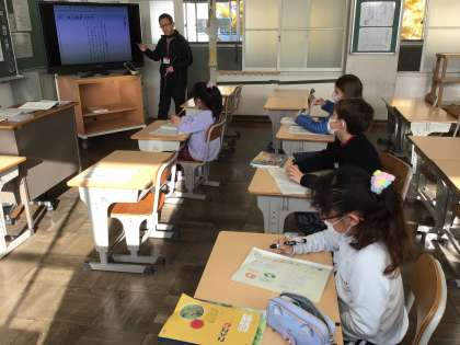 12/9 3年生国語国際学級 公開日 2024/12/09 更新日 2024/12/09 各学年から 3年生国語国際学級では、「モチモチの木」の学習をしています。今日は、人物の気持ちを表す言葉を見つけ、気持ちにあった言葉を使って文章を作りました。