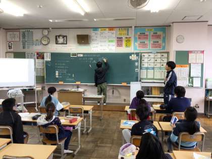 12/11 5年算数1 公開日 2024/12/11 更新日 2024/12/11 各学年から 5年算数では、「わり算を使って長さを比べよう」というめあてで学習を進めていました。「○は△の何倍」という考え方は子どもたちが苦手とするところです。集中して先生や友達の説明をしっかり聞いて取り組んでいました。