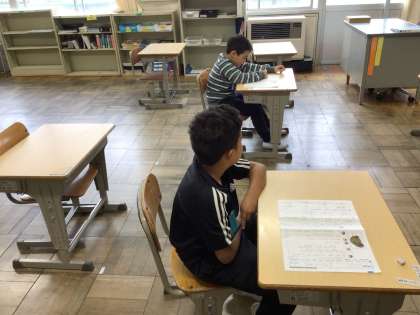 1年生国語国際学級では、国語のテストをしました。集中してテストにのぞみ、漢字も頑張って書くことができました。