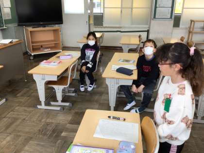 12/11 3年生国語国際学級 公開日 2024/12/11 更新日 2024/12/11 各学年から 3年生の国語国際学級では、「いろいろな伝え方」の学習をしています。今日は、記号による伝え方について考えました。友だちの意見をしっかり聞いている姿が素晴らしいです。