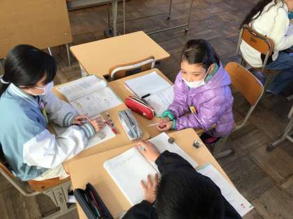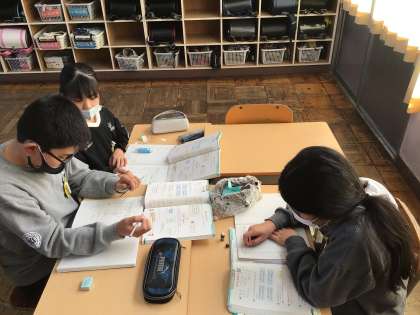 12/12 5年算数1 公開日 2024/12/12 更新日 2024/12/12 各学年から 5年算数では、分数の単元のたしかめとして問題を解いていました。わからないところは班で相談したり、先生に質問したりして、解決を図っていました。苦手な部分をしっかり復習をして、着実に問題が解けるようにしていきましょう。