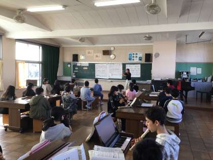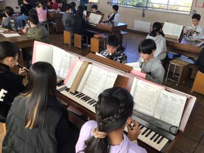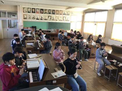 12/12 6年音楽 公開日 2024/12/12 更新日 2024/12/12 各学年から 6年音楽では、「雨のうた」の合奏をしていました。パートの掛け合いやタンギングなど、うまく演奏するためのポイントの説明もしっかり聞いていました。きれいなフレーズが響いていました。