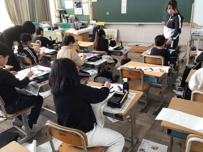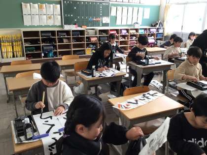 3年生の書写では、「書き初め」の練習をしています。「山ざくら」のお手本をよく見て、書くことができました。いつも、書写ボランティアの方にも手伝っていただいています。ありがとうございます。