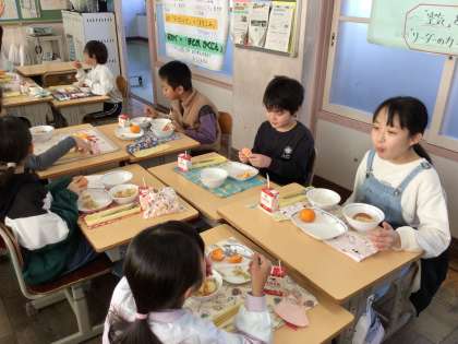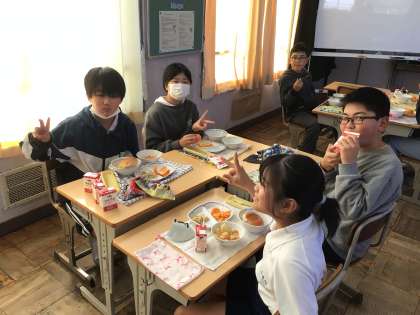 どの学級も友達と楽しく会食をしていました。愛知県産みかんおいしいね。