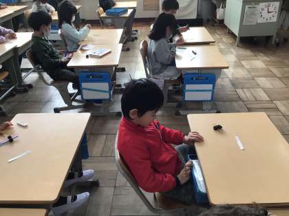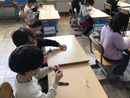 12/13 1年生図工 公開日 2024/12/13 更新日 2024/12/13 各学年から 1年生図工で「すきまちゃん」を作りました。テープ付きのスポンジと短いモール2本で作りました。一人一人、腕や足の長さを工夫しました。