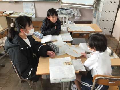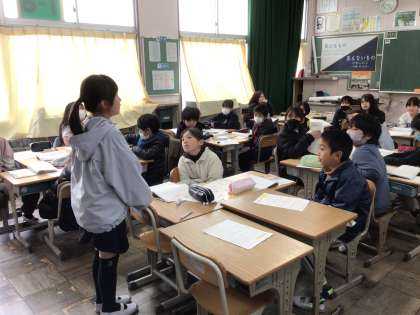 12/13 4年生国語 公開日 2024/12/13 更新日 2024/12/13 各学年から 「ごんぎつね」の学習です。主人公ごんの行動や言葉からごんの気持ちを考えました。今日は、ごんが兵十のお母さんが死んでしまったことを知る場面。自分のいたずらを後悔するごんの気持ちを読み取ることができました。