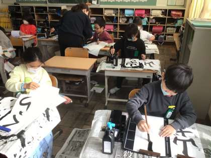書道ボランティアの先生に教えていただきながら書き初めの練習をしました。長い書き初め用紙に書くのがなかなか慣れない様子ですが、集中して書くことができました。