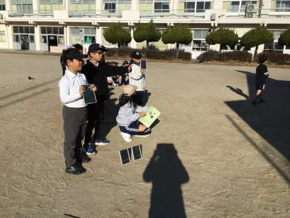 12/17 3年生理科 公開日 2024/12/17 更新日 2024/12/17 各学年から 「太陽の光」の学習です。昨日は太陽が出るタイミングと観察のタイミングが合わず、延期していた観察がやっとできました。鏡で太陽の光を集めると明るさや温かさはどうなるのか、何度も試しながら調べました。