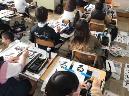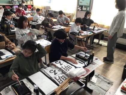 12/17 4年書写 公開日 2024/12/17 更新日 2024/12/17 各学年から 4年書写では、書き初め大会に向けて練習をしました。豊田書写連盟の先生に一人一人添削をしていただき、それを参考にがんばって練習をしました。