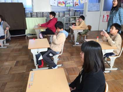 今日の7、8組の外国語では、ALTの先生と一緒に、クリスマスにちなんだ英語の単語を学習しました。クリスマスが楽しみな子どもたちは、とても楽しみながら活動することができました。