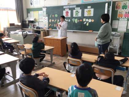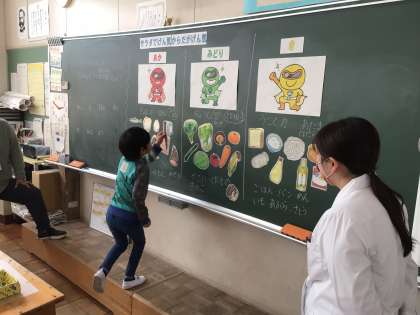 12/19 1年生活 公開日 2024/12/19 更新日 2024/12/19 各学年から 1年生活科では、食べ物のパワーについて学ぶ栄養教諭による授業を行っていました。給食に出るりっちゃんのサラダは赤、黄、緑の3つのグループすべての食材を使ったバランスのよいメニューです。何がどのグループになるのかを話し合って考えました。
