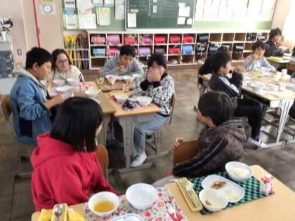 今日も友達と会話をしながら楽しく食べていました。もうすぐ冬至ということで、カボチャのみそ汁がでました。今日もおかわりじゃんけんで盛り上がっている学級もありました。