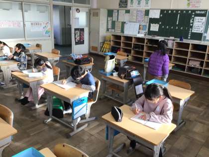 今朝はマイナス3度の冷え込みでした。今日も笑顔で登校してきました。温かい教室で朝の支度をすばやく行っていました。