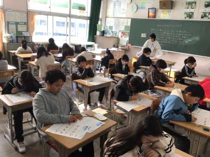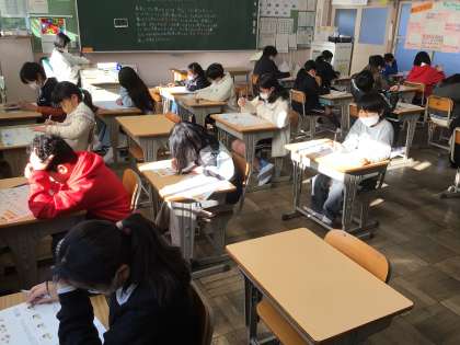 12/23 5年外国語 公開日 2024/12/23 更新日 2024/12/23 各学年から 5年外国語では、授業で習ったところの単元テストを実施していました。リスニング問題も集中して取り組んでいました。