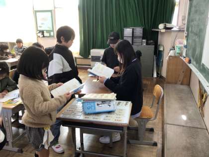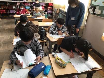 冬休み前までの学習のまとめです。算数の友の問題を解き進めました。学習した範囲が全て終わっているか先生のチェックを受け、「合格!」と言われた子どもは「やったー!」と嬉しそうな表情。やるべきことは終わらせて、すっきりした気持ちで冬休みを迎えられるといいですね。