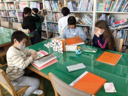 福祉について調べています。視覚障がいや聴覚障がいとはどのようなものなのか、どのような道具や設備があると便利に生活できるのかを本で調べました。たくさんある本の中から自分にとって必要な本を探すのが大変なようでしたが、目次を上手に使って見つけることができました。