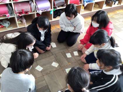 12/23 かるた練習 公開日 2024/12/23 更新日 2024/12/23 各学年から 休み時間にかるた練習をしていました。慌ててお手つきをしてしまう子もいて、練習といえども大盛り上がりでした。年明け1月9日のやまびこ遊びでかるたの練習を行う予定です。