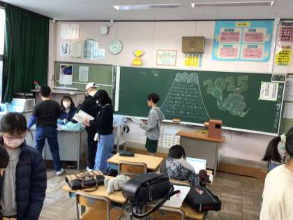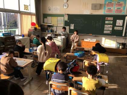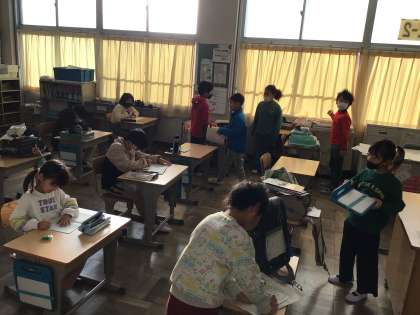 温かい教室で、翌日の連絡を記入しながら友達と談笑していました。久しぶりに子どもたちの声が校舎内響き渡りました。
