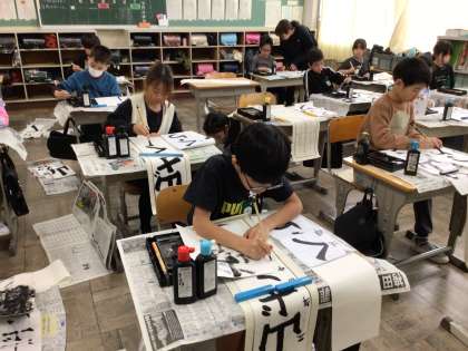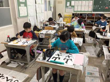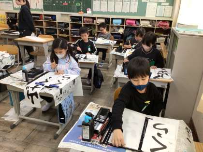 「山ざくら」のひらがなが難しいようですが、がんばって書いています。