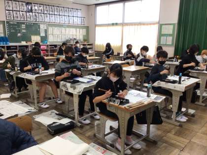 1/7 6年生書き初め大会1 公開日 2025/01/07 更新日 2025/01/07 各学年から 6年生は、小学校生活最後の書き初め大会です。「満天の星」という字を書きます。みんな集中して書いています。