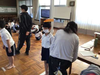 年明け全学級身体測定を実施していきます。今日の2限に4年、3限に3年、4限に2年と時間を分けて実施していきます。養護教諭から睡眠の大切さについて説明があり、姿勢よく話を聞くことができていました。その後身長、体重の測定と爪の検査をしました。