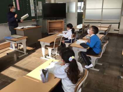 3年生国語、国際学級では、「俳句に親しもう」の学習をしています。今日は、俳句を読んだり、俳句を作ってみたりしました。