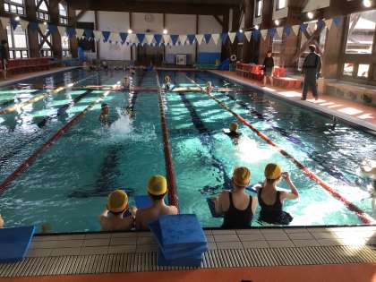 1/8 5年生体育 公開日 2025/01/08 更新日 2025/01/08 各学年から 今日から水泳学習が始まりました。寒い時期ですが、水温やプールサイドはあたたかく、スイミングスクールのコーチに教えていただきながら、たくさん泳ぐことができました。