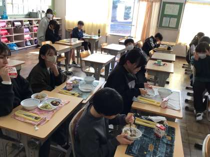今日の給食の様子です。おかわりをする子もいて、楽しく会食をしていました。