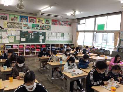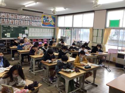 今日の読み語りは5・6年以外で実施だったので、5・6年は通常の読書タイムでした。8時半になると静かに読書が始まりました。とてもよい姿勢で本を読んでいました。さすが高学年ですね。