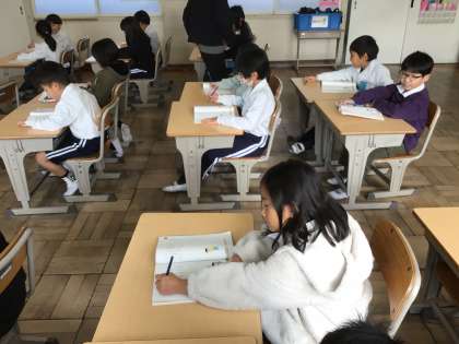 1/9 1年生国語 公開日 2025/01/09 更新日 2025/01/09 各学年から 1年生国語では、詩「みみずのたいそう」の学習をしています。今日は、この詩の好きなところに線を引きました。好きなところと、好きな理由を発表しました。