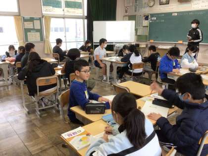5年生算数では、「平均とその利用」の学習をしています。問題について、グループで話し合い活動を行って、発表しました。